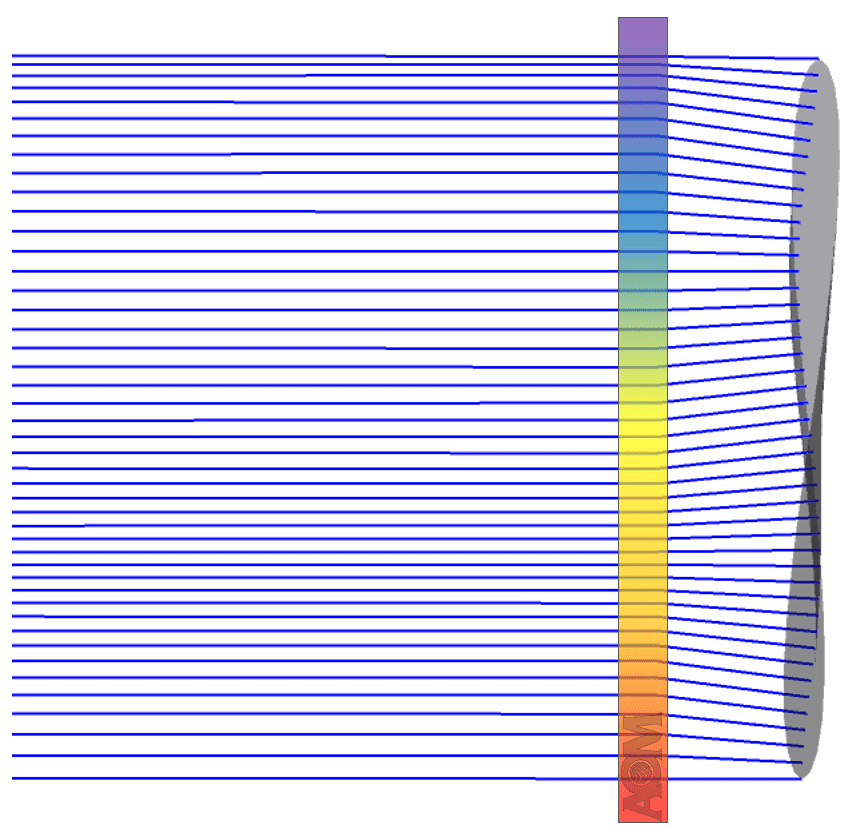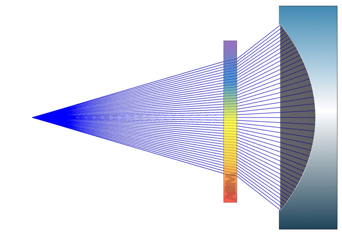 Another way to describe this is to consider how the interferometer light rays behave in a test. A CGH is designed to bend rays in a prescribed way across the aperture, such that all rays reach the test optic at normal incidence. The result is that all rays auto-reflect from the test surface and return through the CGH to the interferometer on the same path that they exited – a null test!