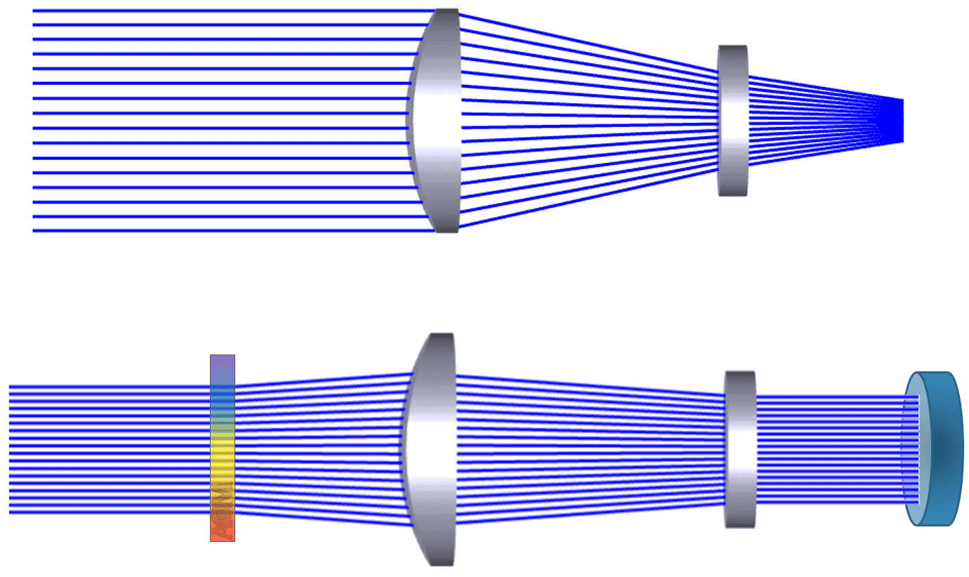 Top: A two-element subsystem with infinite conjugate and uncorrected output by design.