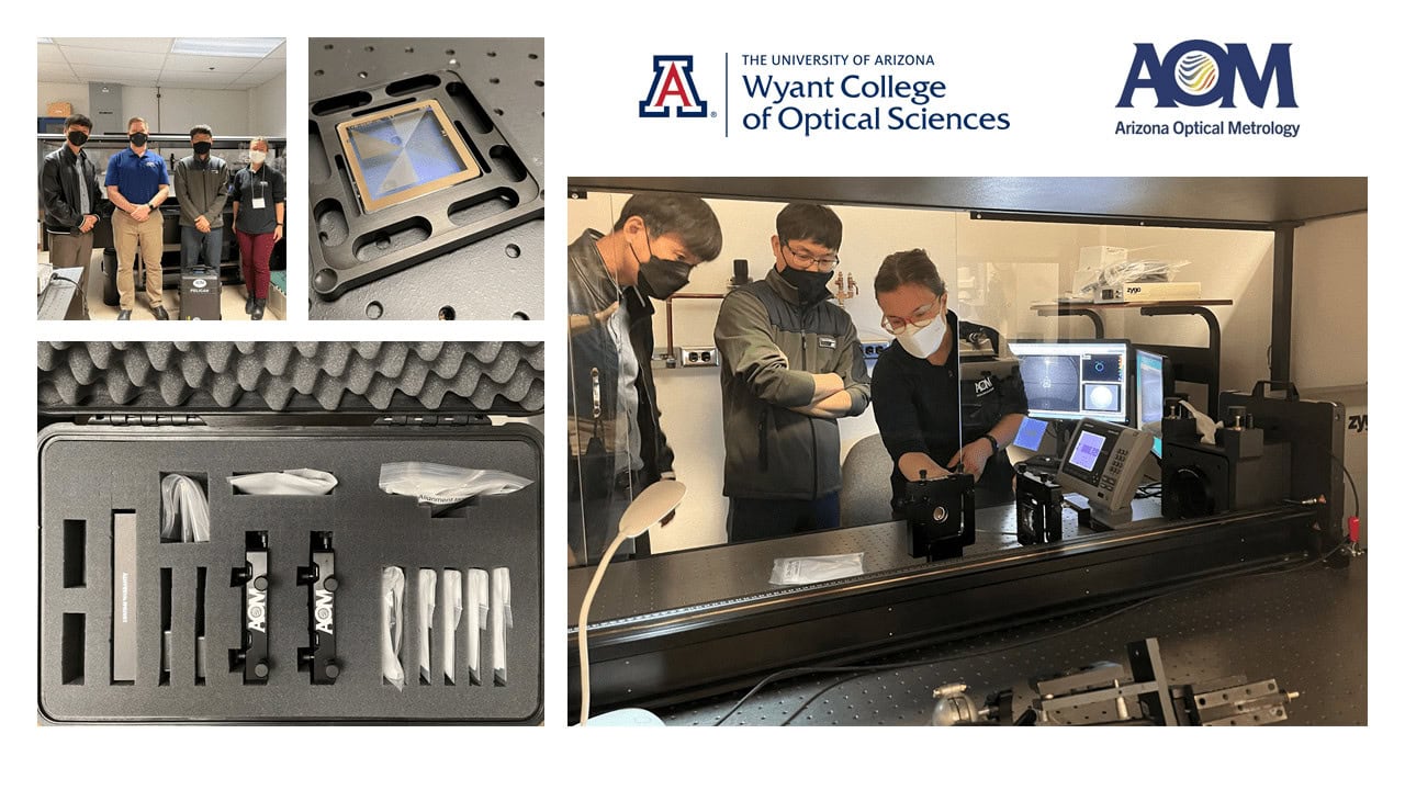 AOM is excited to announce the delivery of our first Computer Generated Hologram (CGH) Educational Kit donation to the University of Arizona’s Wyant College of Optical Sciences. The kit will provide students and faculty the opportunity for hands-on experience with a range of different CGHs – from a design that highlights the fundamentals of diffraction, to various alignment techniques, and cylinder and asphere surface figure measurements.