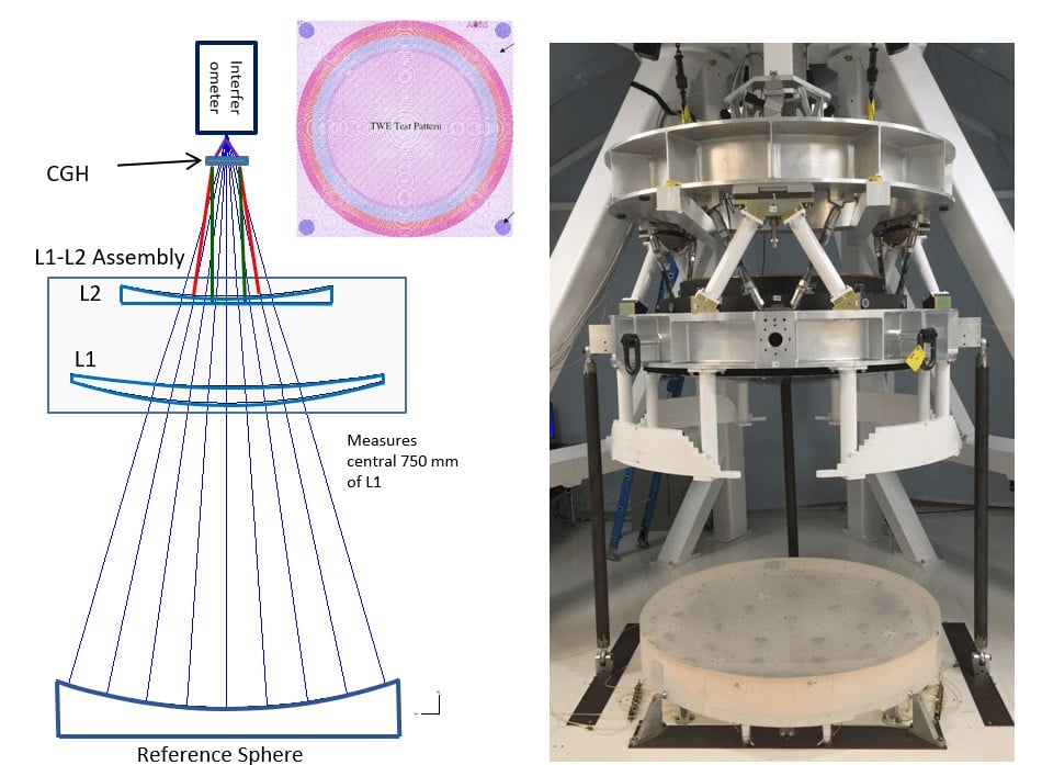 The giant convex secondary mirror presented its own unique challenge. It was tested at L3Harris (formerly Exelis) using a custom-built scanning and stitching interferometer developed by Cormic Merle, now Director of Metrology Systems at AOM in Rochester.