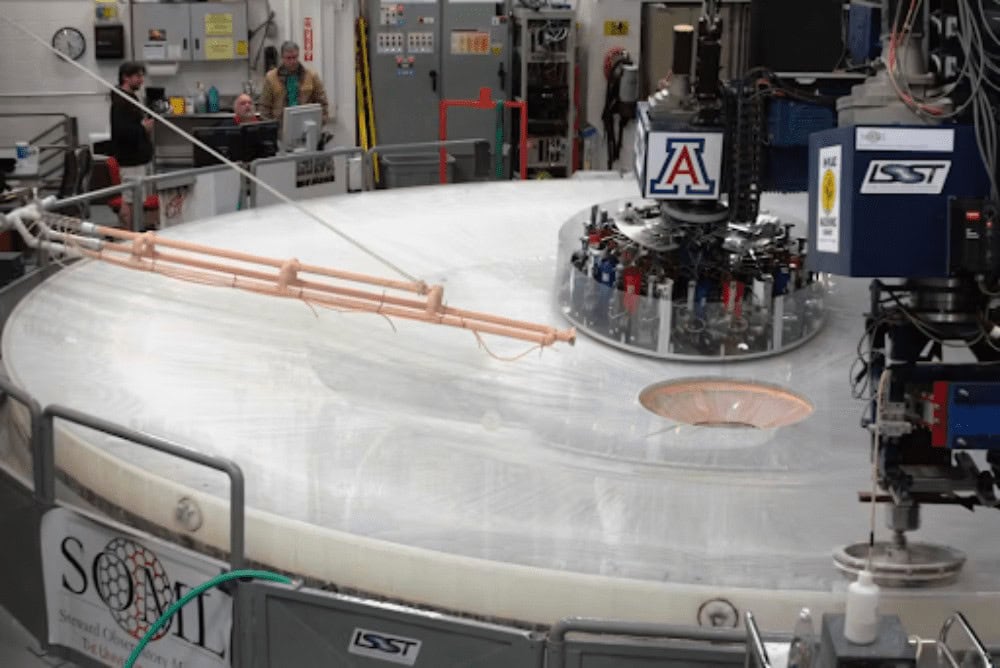 The Rubin camera includes two massive lenses—measuring over 1.6 and 1.2 meters in diameter and just over 82 mm and 30 mm thick—earning them the nickname “the world’s largest contact lenses.”