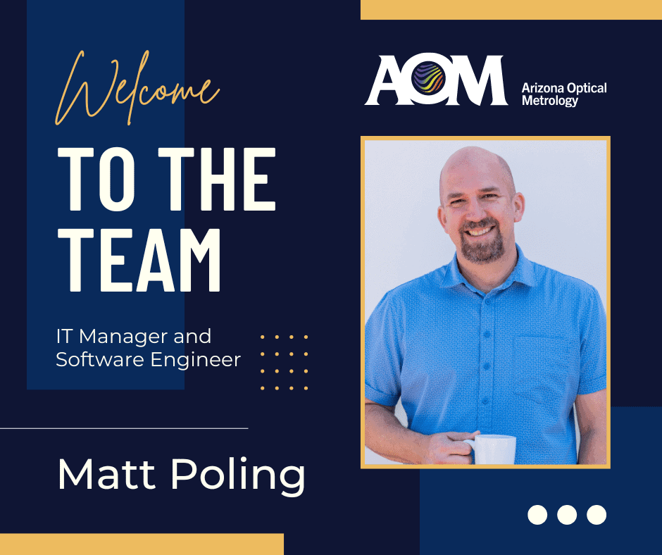 We’re excited to welcome Matt Poling, a lover of all things tech, to the AOM team! With 25 years of experience in IT and software engineering, Matt brings a wealth of expertise from the optics industry, including previous experience with Phase Shift Technology, ADE Corp, Zygo, and Inter-Optics. He also the co-founded Jigsaw Software Systems and holds a BS in Information Systems.