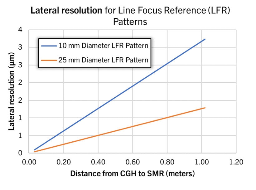 The sensitivity of a LF pattern to axial misalignment depends on pattern size, pattern separation on CGH, and distance to retroreflector target. A table of typical values is shown below.