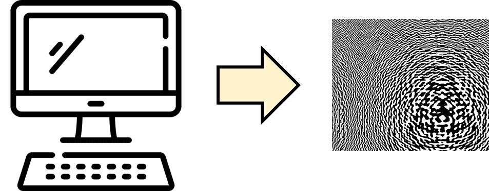 A “traditional” analog CGH uses interference of light from a real object with a reference beam to create a diffractive structure.
